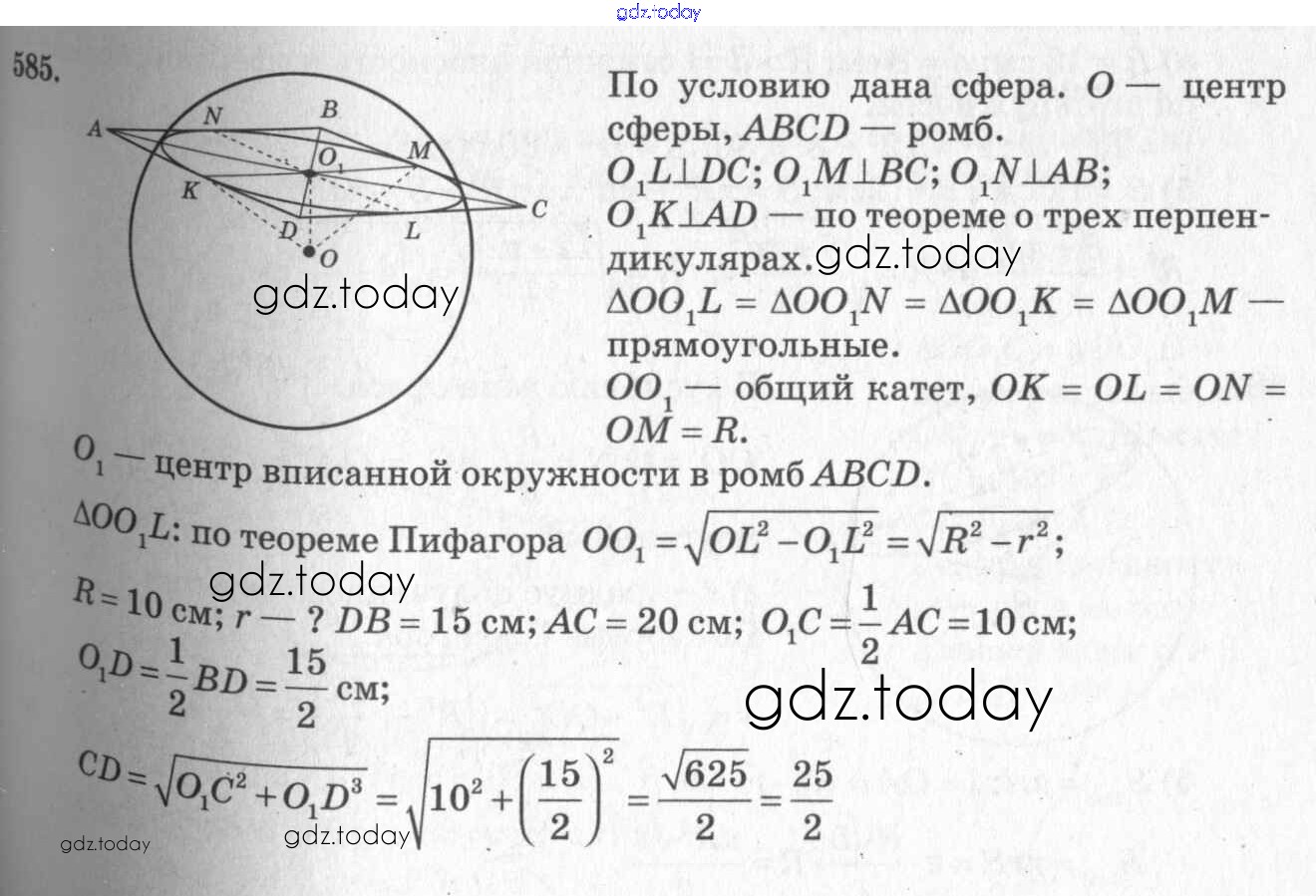 Ответы к Решение. Задачи 585 Учебнику по Геометрии для 10-11 класса Атанасян, Бутузов Базовый и углубленный уровень Просвещение, Просвещение 2015, 2023