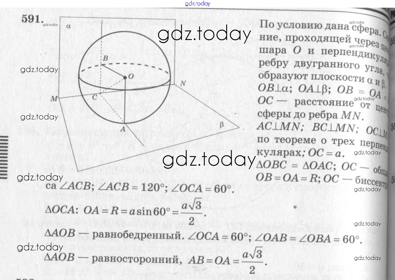 Ответы к Решение. Задачи 591 Учебнику по Геометрии для 10-11 класса Атанасян, Бутузов Базовый и углубленный уровень Просвещение, Просвещение 2015, 2023