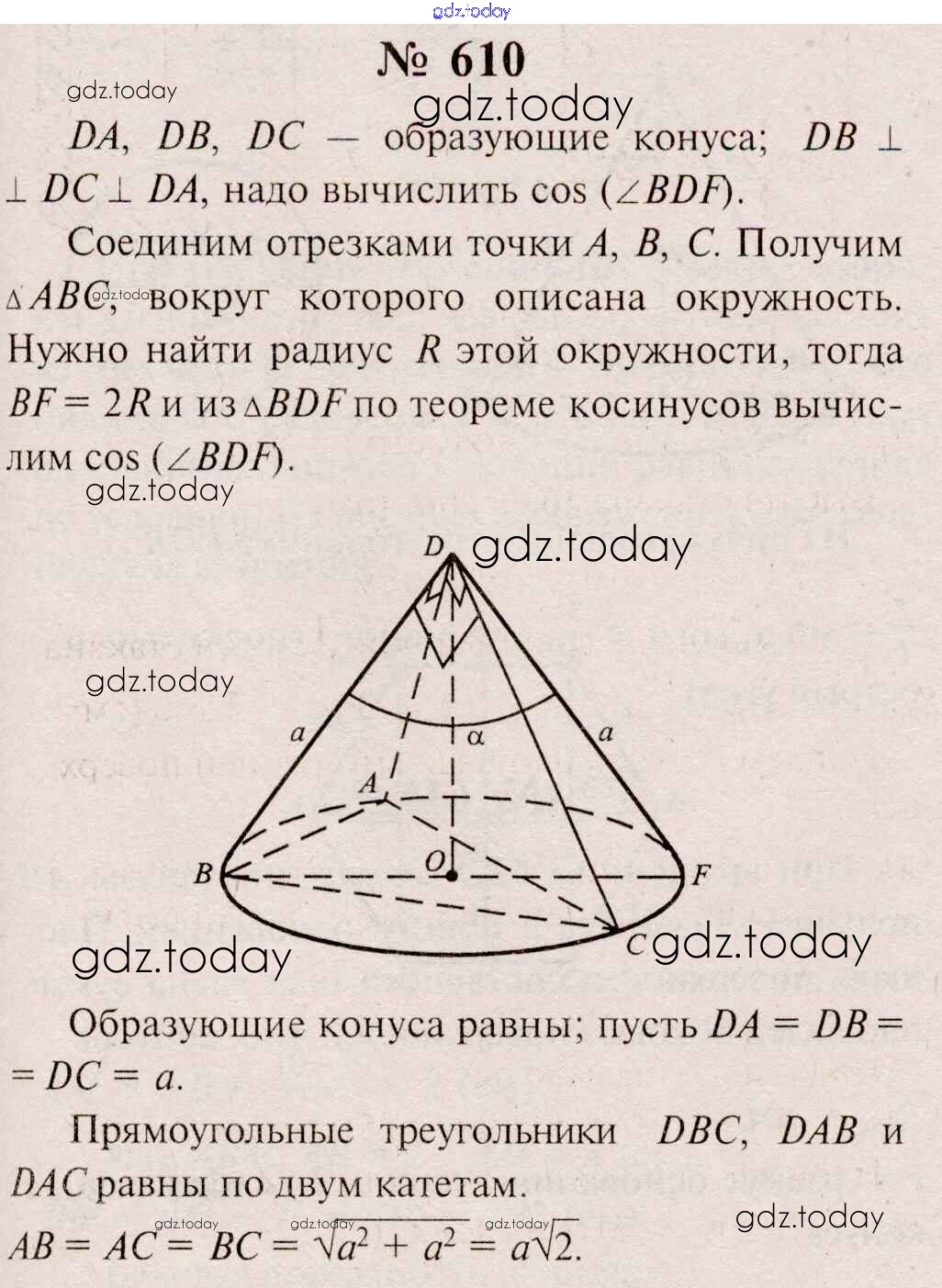 Ответы к Решение. Задачи 610 Учебнику по Геометрии для 10-11 класса Атанасян, Бутузов Базовый и углубленный уровень Просвещение, Просвещение 2015, 2023