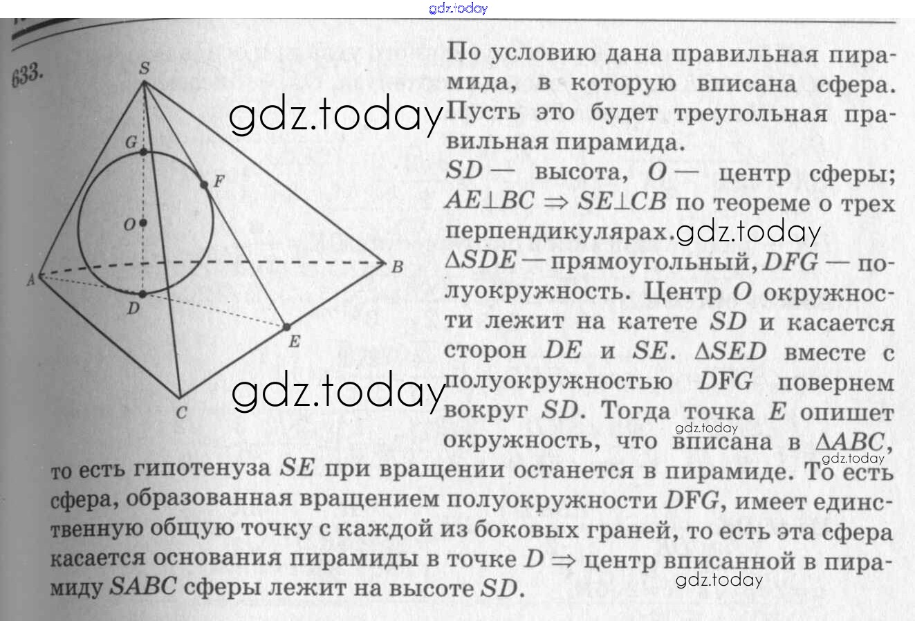 Ответы к Решение. Задачи 633 Учебнику по Геометрии для 10-11 класса Атанасян, Бутузов Базовый и углубленный уровень Просвещение, Просвещение 2015, 2023