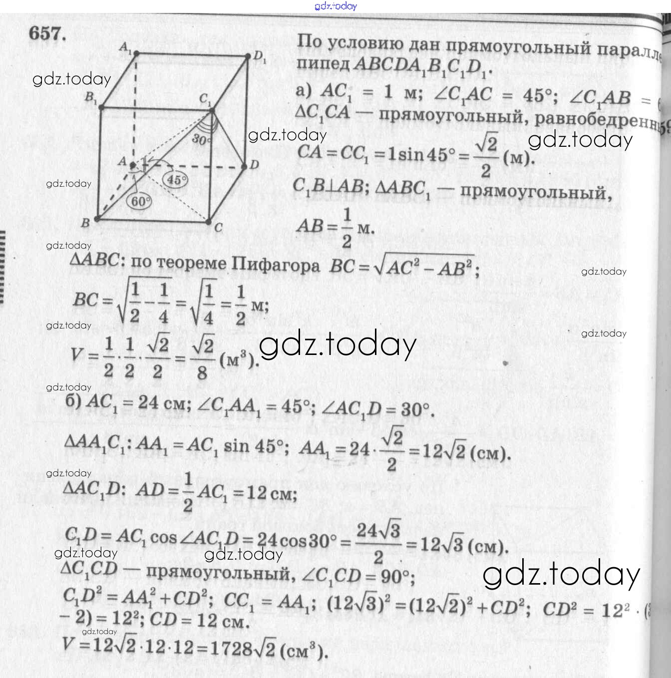 Ответы к Решение. Задачи 657 Учебнику по Геометрии для 10-11 класса Атанасян, Бутузов Базовый и углубленный уровень Просвещение, Просвещение 2015, 2023