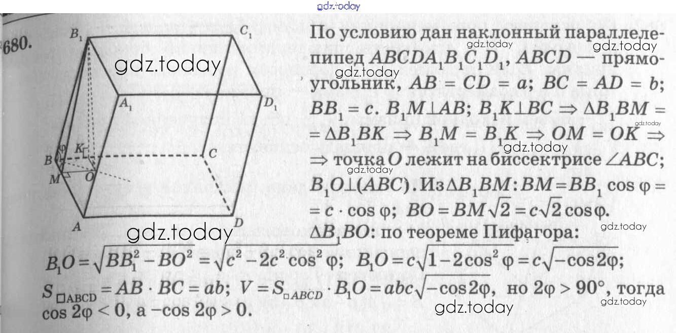 Ответы к Решение. Задачи 680 Учебнику по Геометрии для 10-11 класса Атанасян, Бутузов Базовый и углубленный уровень Просвещение, Просвещение 2015, 2023