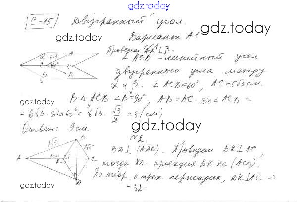 Ответы к СР-15. Варианты Самостоятельные работы 1 Самостоятельным и контрольным работам по Геометрии для 10 класса Ершова, Голобородько Илекса 2014
