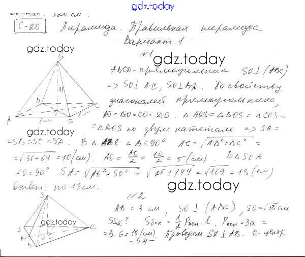 Ответы к СР-20. Варианты Самостоятельные работы 1 Самостоятельным и контрольным работам по Геометрии для 10 класса Ершова, Голобородько Илекса 2014
