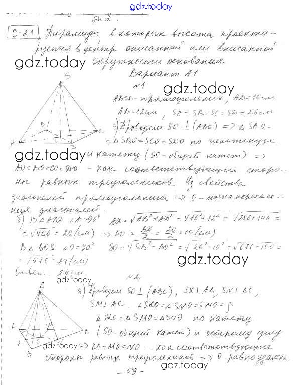 Ответы к СР-21. Варианты Самостоятельные работы 1 Самостоятельным и контрольным работам по Геометрии для 10 класса Ершова, Голобородько Илекса 2014