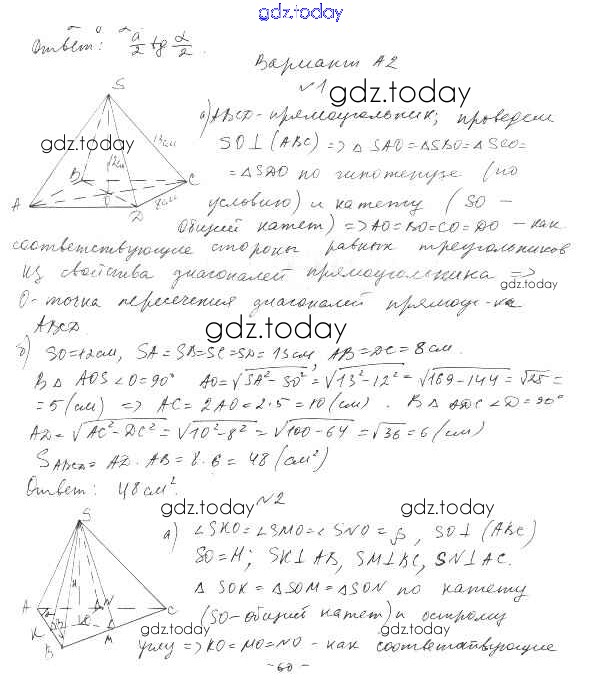Ответы к СР-21. Варианты Самостоятельные работы 2 Самостоятельным и контрольным работам по Геометрии для 10 класса Ершова, Голобородько Илекса 2014