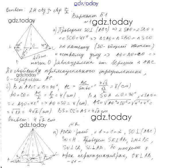 Ответы к СР-21. Варианты Самостоятельные работы 3 Самостоятельным и контрольным работам по Геометрии для 10 класса Ершова, Голобородько Илекса 2014