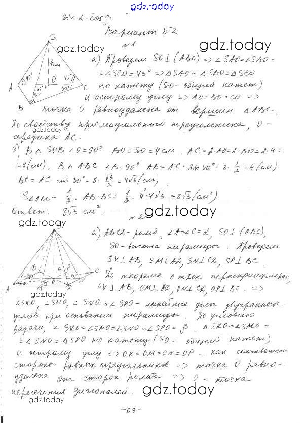 Ответы к СР-21. Варианты Самостоятельные работы 4 Самостоятельным и контрольным работам по Геометрии для 10 класса Ершова, Голобородько Илекса 2014