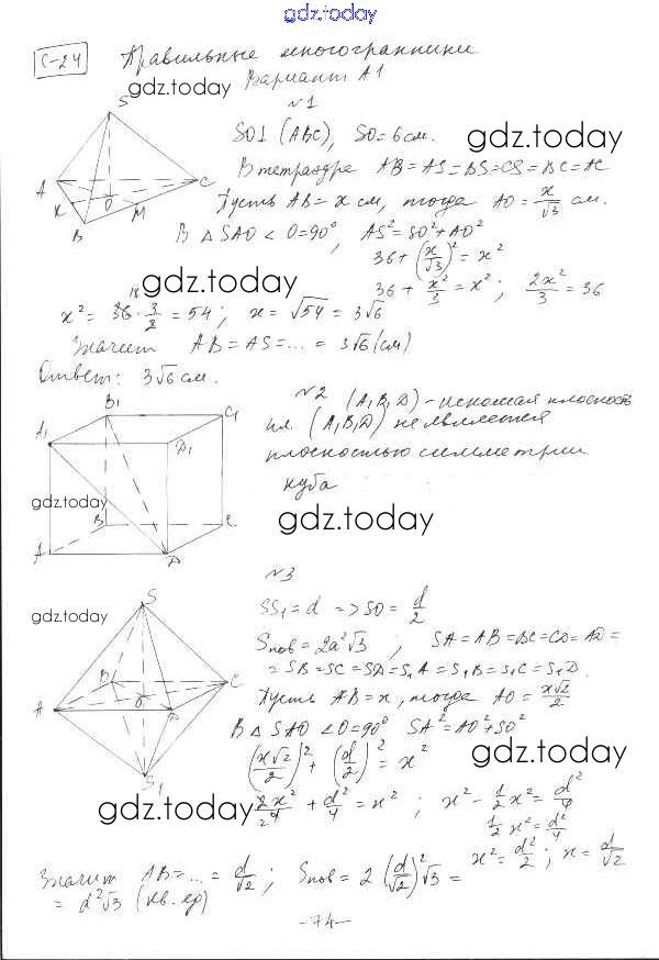 Ответы к СР-24. Варианты Самостоятельные работы 1 Самостоятельным и контрольным работам по Геометрии для 10 класса Ершова, Голобородько Илекса 2014