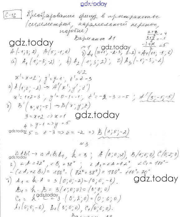 Ответы к СР-16. Варианты Самостоятельные работы 1 Самостоятельным и контрольным работам по Геометрии для 10 класса Ершова, Голобородько Илекса 2014