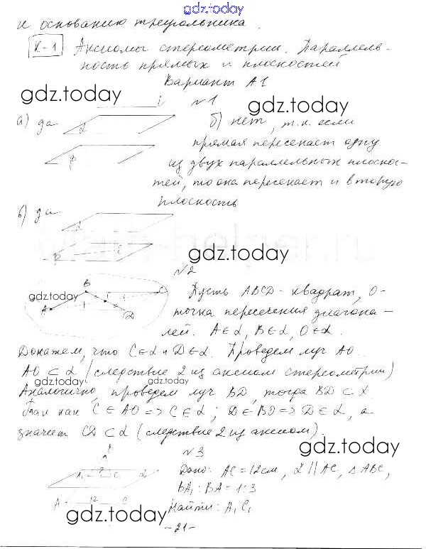 Ответы к КР-1. Варианты Контрольные работы 1 Самостоятельным и контрольным работам по Геометрии для 10 класса Ершова, Голобородько Илекса 2014