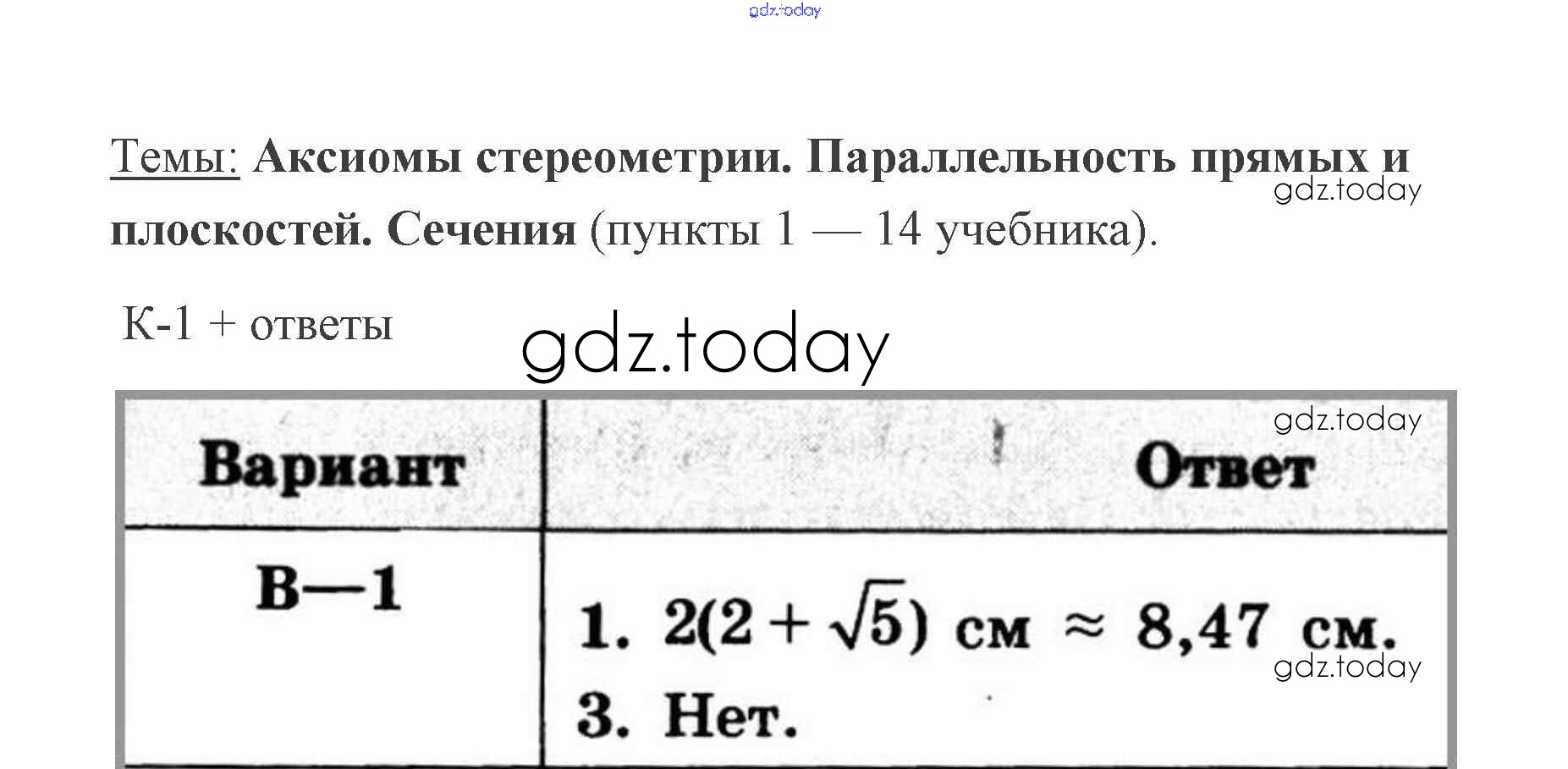 На страницах сайта gdz.today вы найдете учебный и вспомогательный материал, направленный на улучшения знаний школьной программы. ГДЗ - онлайн мир знаний Решение к контрольная работе №1 (Варианты) 1 Контрольным работам по Геометрии для 10 класса Иченская Базовый уровень Просвещение 2020