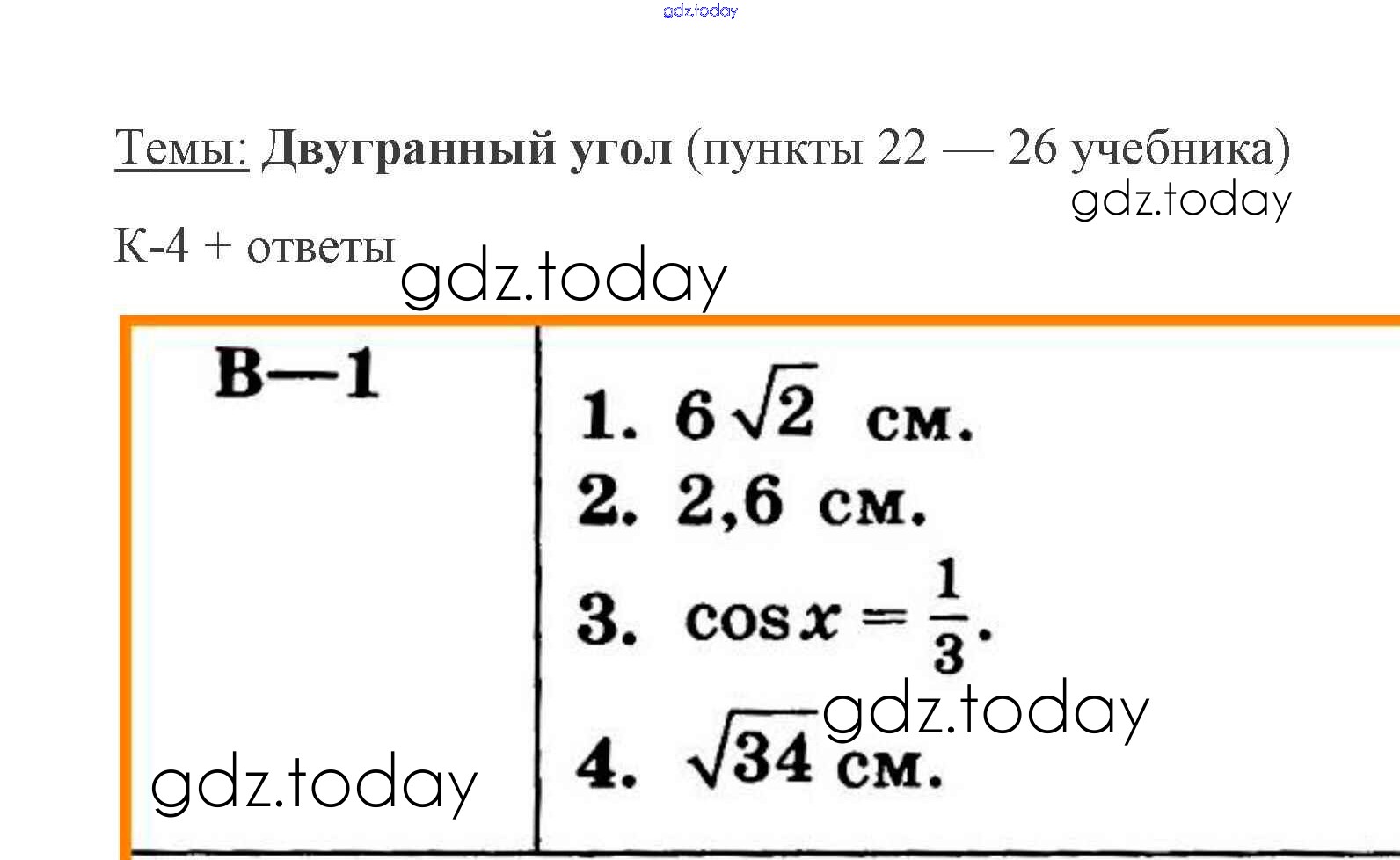 На страницах сайта gdz.today вы найдете учебный и вспомогательный материал, направленный на улучшения знаний школьной программы. ГДЗ - онлайн мир знаний Решение к контрольная работе №4 (Варианты) 1 Контрольным работам по Геометрии для 10 класса Иченская Базовый уровень Просвещение 2020