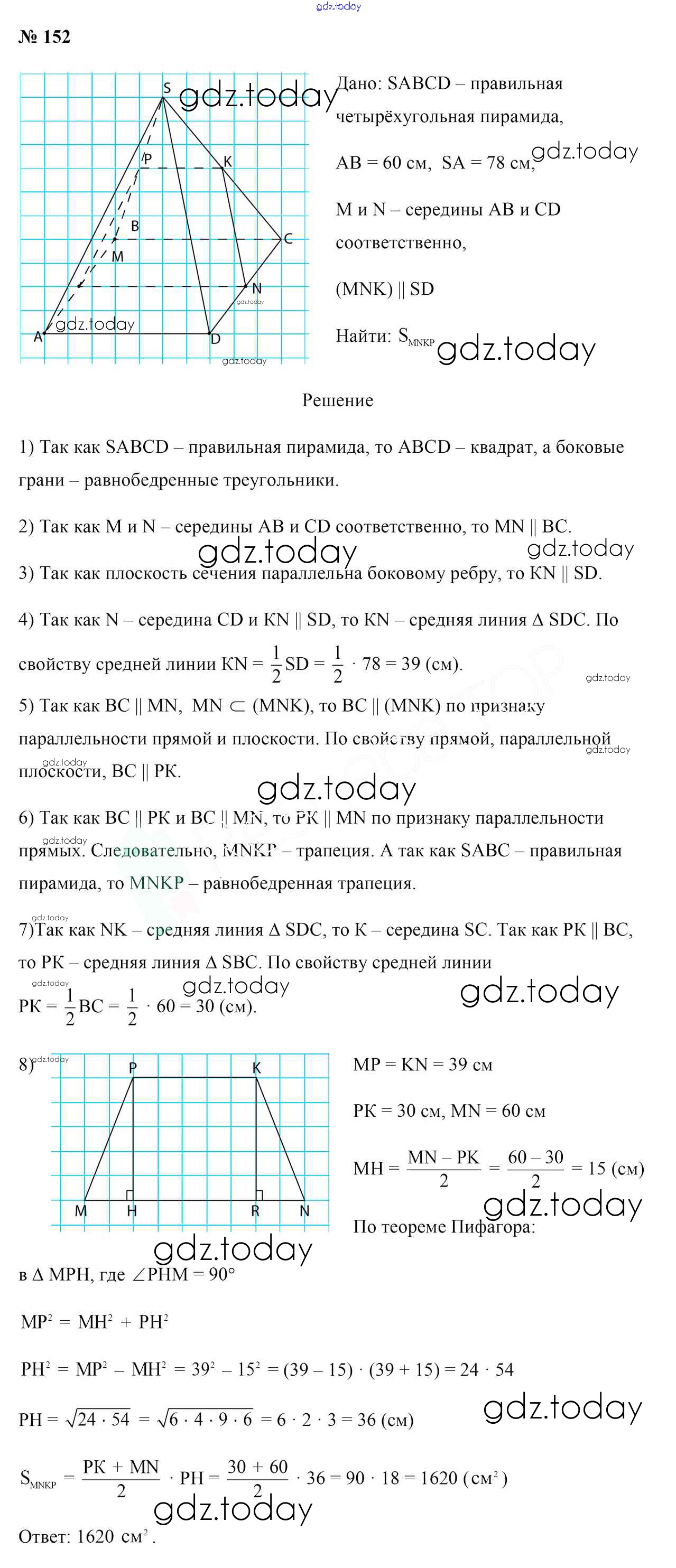 Ответы к Решение к задачам 152 Учебнику по Геометрии для 10 класса Латотин, Чеботаревский Народная асвета 2020
