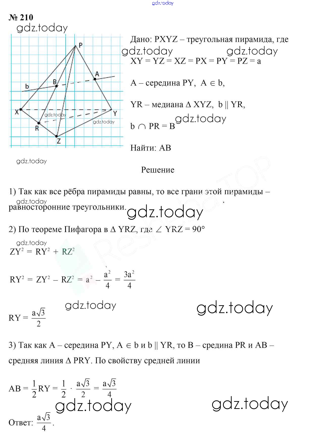 Ответы к Решение к задачам 210 Учебнику по Геометрии для 10 класса Латотин, Чеботаревский Народная асвета 2020