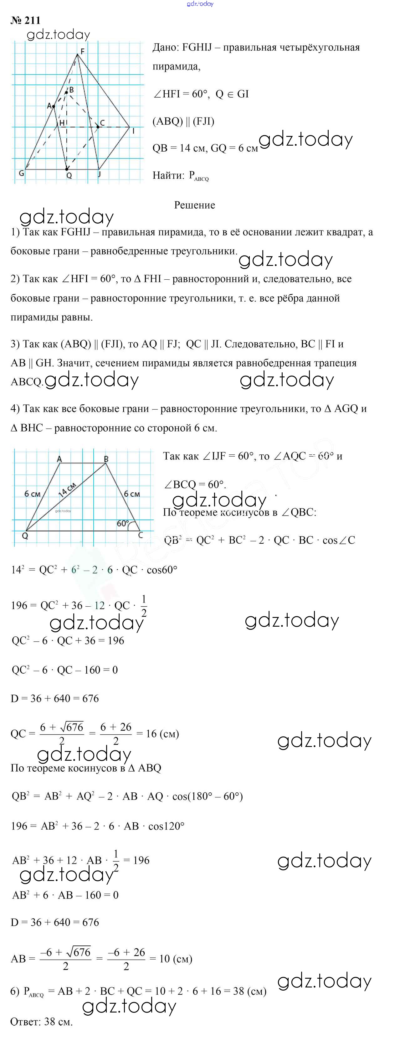 Ответы к Решение к задачам 211 Учебнику по Геометрии для 10 класса Латотин, Чеботаревский Народная асвета 2020