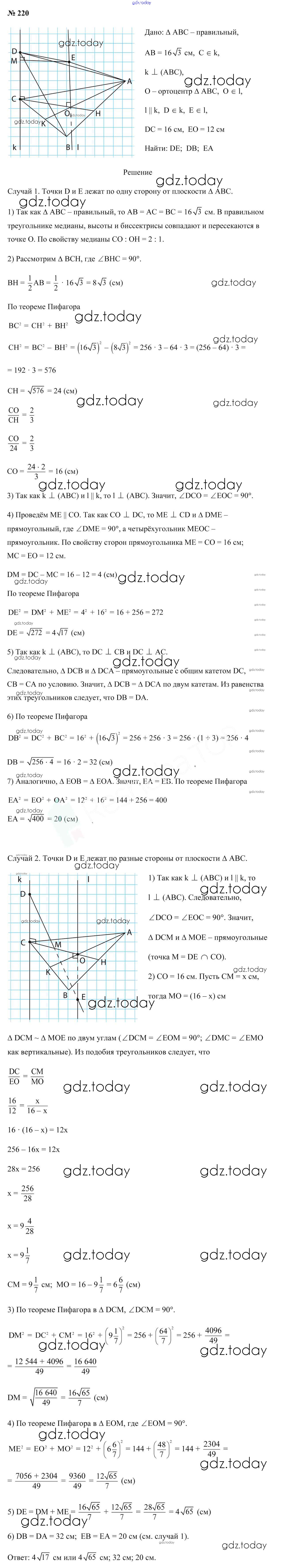 На страницах сайта gdz.today вы найдете учебный и вспомогательный материал, направленный на улучшения знаний школьной программы. ГДЗ - онлайн мир знаний Решение к задачам 220 Учебнику по Геометрии для 10 класса Латотин, Чеботаревский Народная асвета 2020