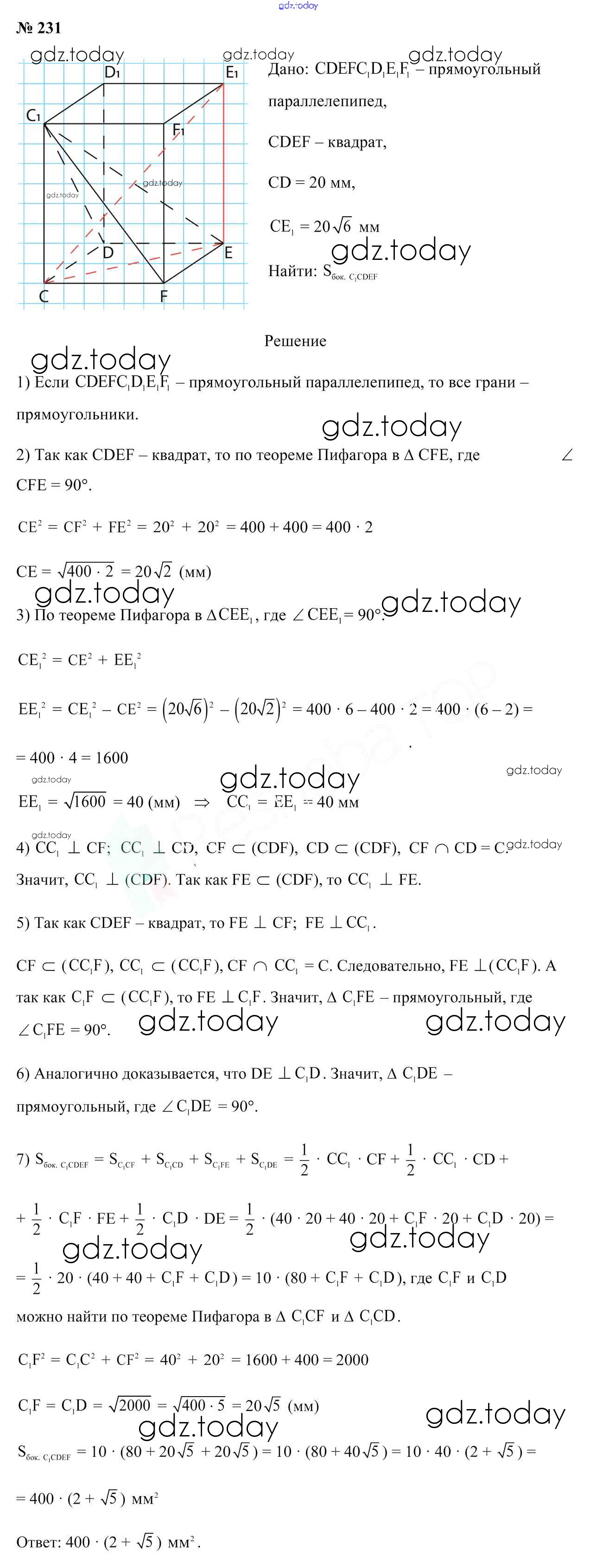 На страницах сайта gdz.today вы найдете учебный и вспомогательный материал, направленный на улучшения знаний школьной программы. ГДЗ - онлайн мир знаний Решение к задачам 231 Учебнику по Геометрии для 10 класса Латотин, Чеботаревский Народная асвета 2020