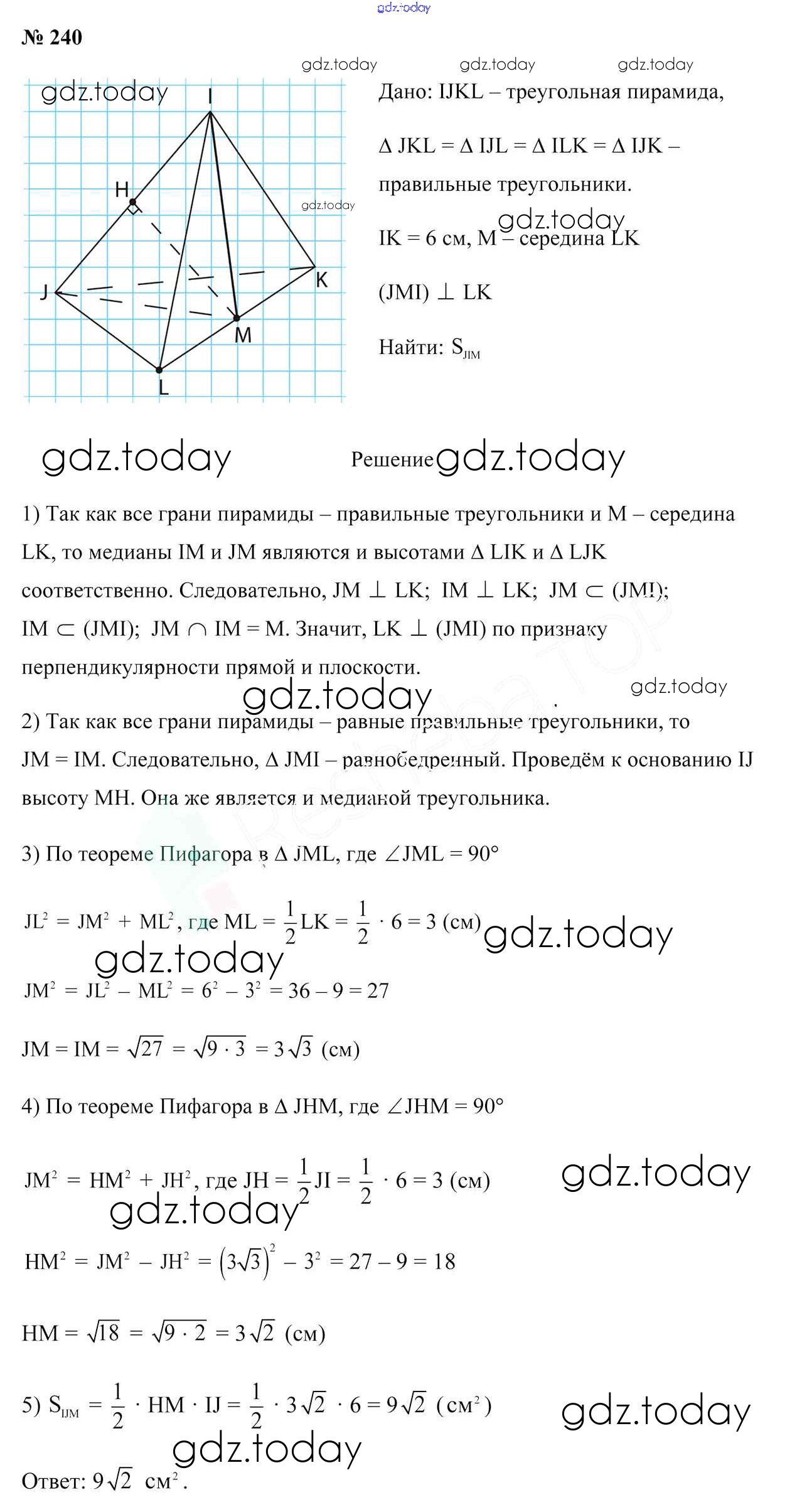 На страницах сайта gdz.today вы найдете учебный и вспомогательный материал, направленный на улучшения знаний школьной программы. ГДЗ - онлайн мир знаний Решение к задачам 240 Учебнику по Геометрии для 10 класса Латотин, Чеботаревский Народная асвета 2020