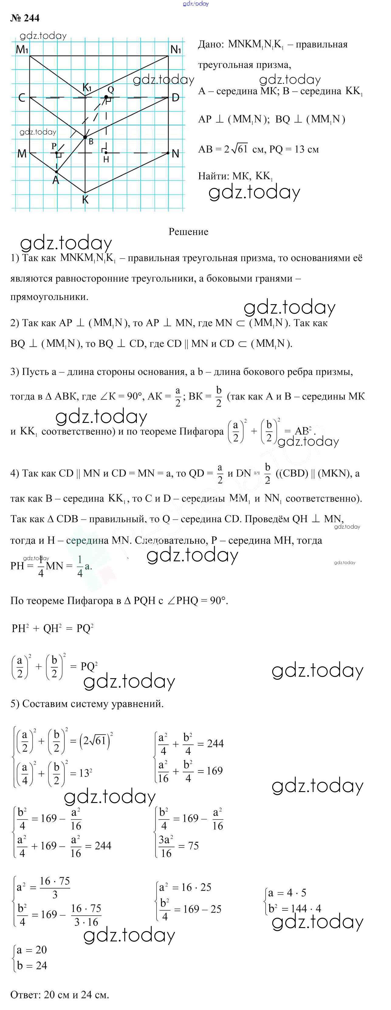 Ответы к Решение к задачам 244 Учебнику по Геометрии для 10 класса Латотин, Чеботаревский Народная асвета 2020