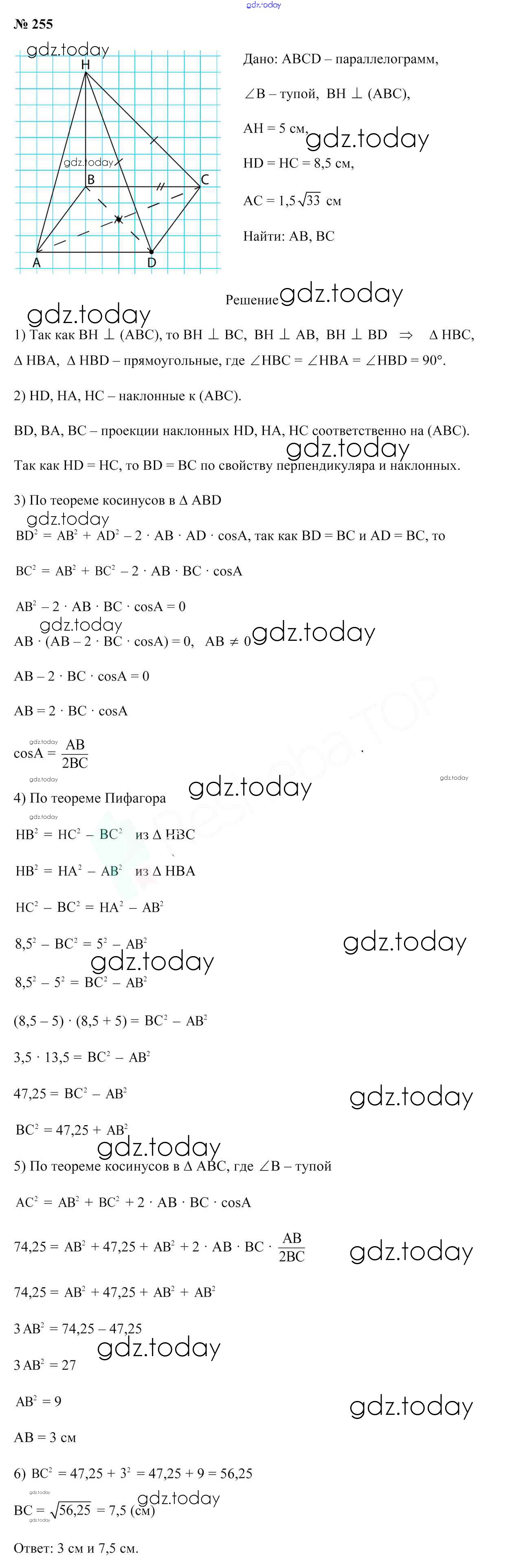 Ответы к Решение к задачам 255 Учебнику по Геометрии для 10 класса Латотин, Чеботаревский Народная асвета 2020