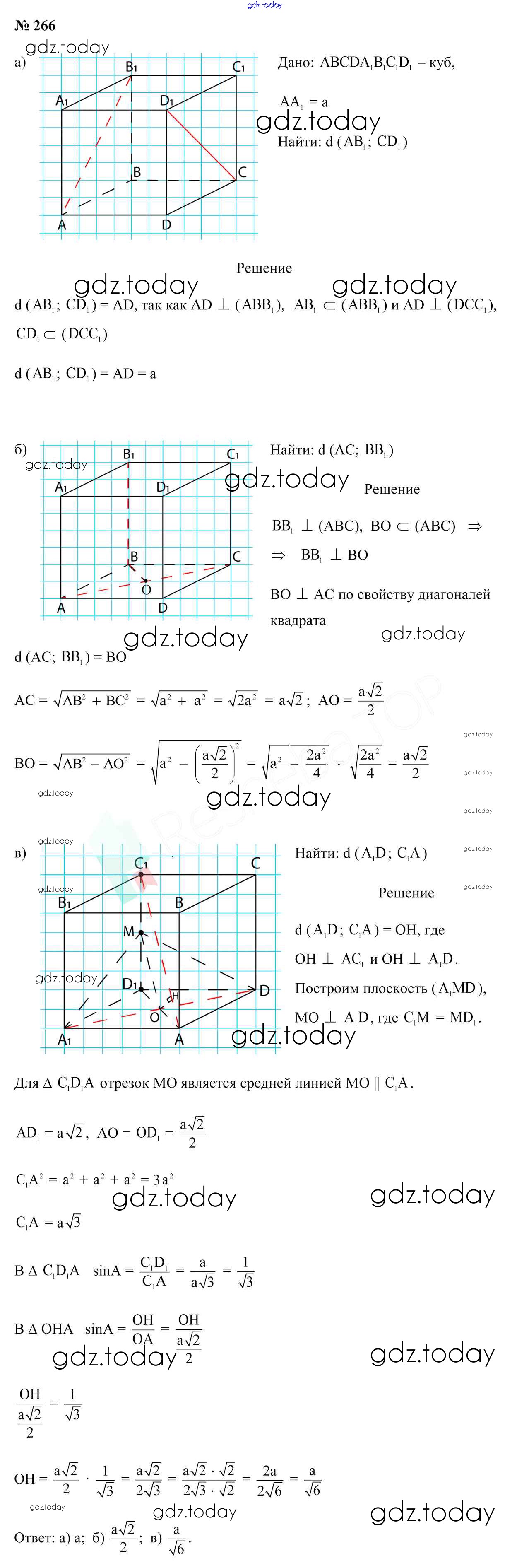 На страницах сайта gdz.today вы найдете учебный и вспомогательный материал, направленный на улучшения знаний школьной программы. ГДЗ - онлайн мир знаний Решение к задачам 266 Учебнику по Геометрии для 10 класса Латотин, Чеботаревский Народная асвета 2020