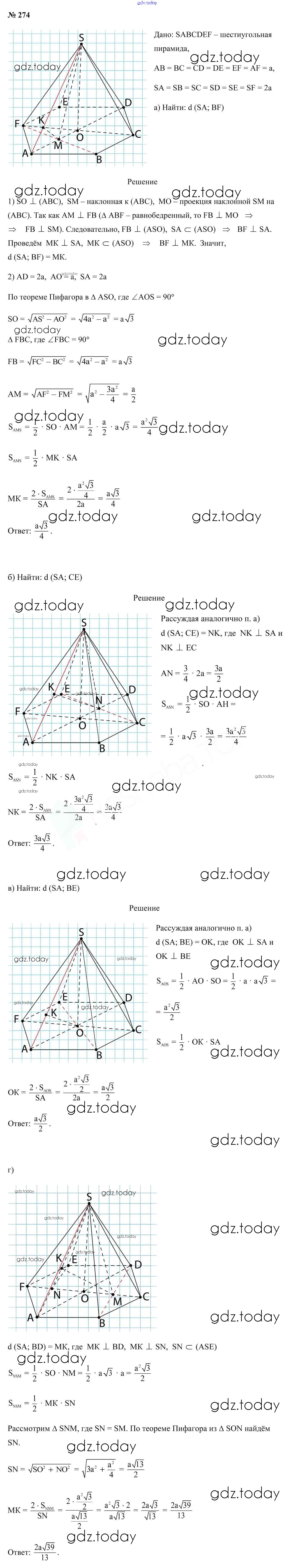Ответы к Решение к задачам 274 Учебнику по Геометрии для 10 класса Латотин, Чеботаревский Народная асвета 2020