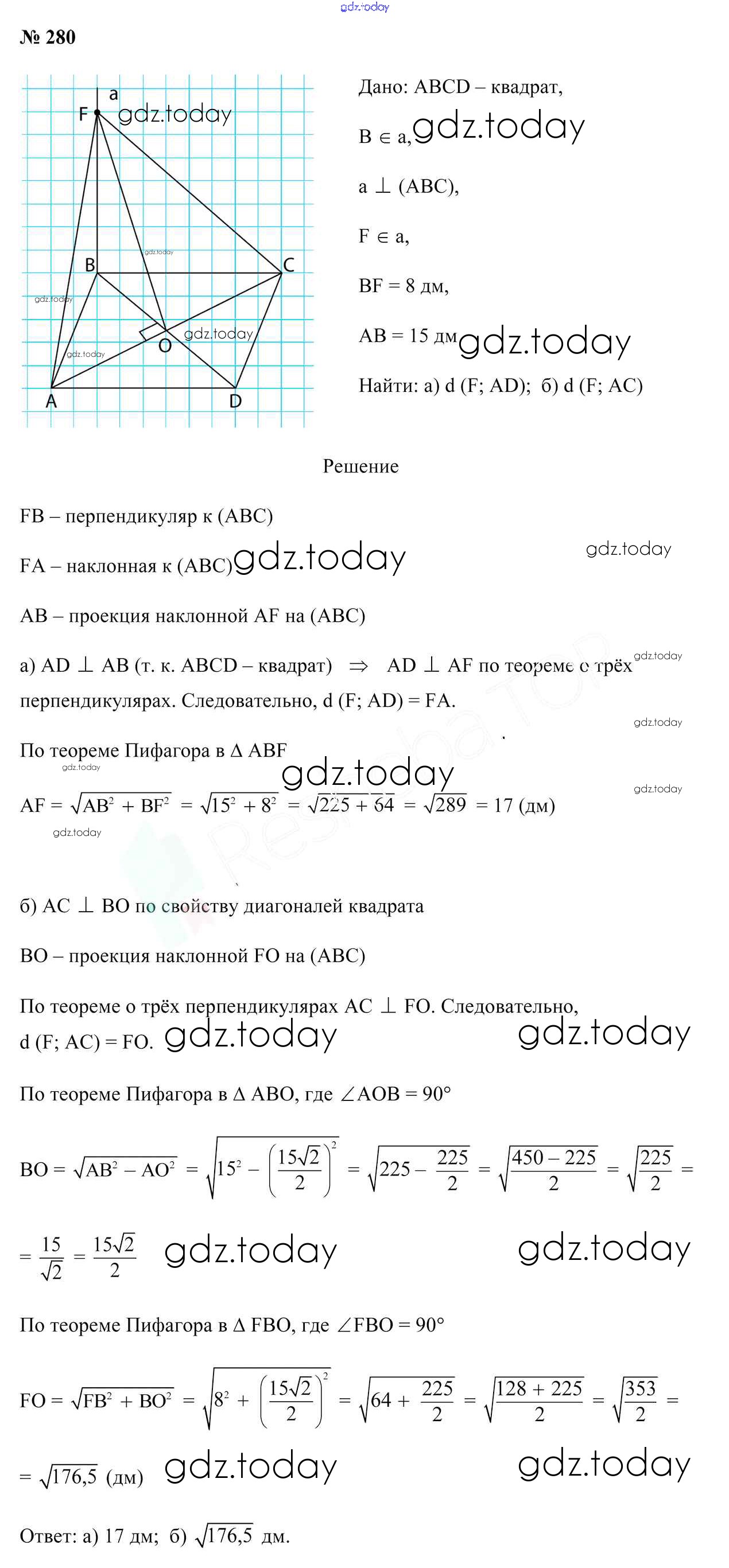 На страницах сайта gdz.today вы найдете учебный и вспомогательный материал, направленный на улучшения знаний школьной программы. ГДЗ - онлайн мир знаний Решение к задачам 280 Учебнику по Геометрии для 10 класса Латотин, Чеботаревский Народная асвета 2020