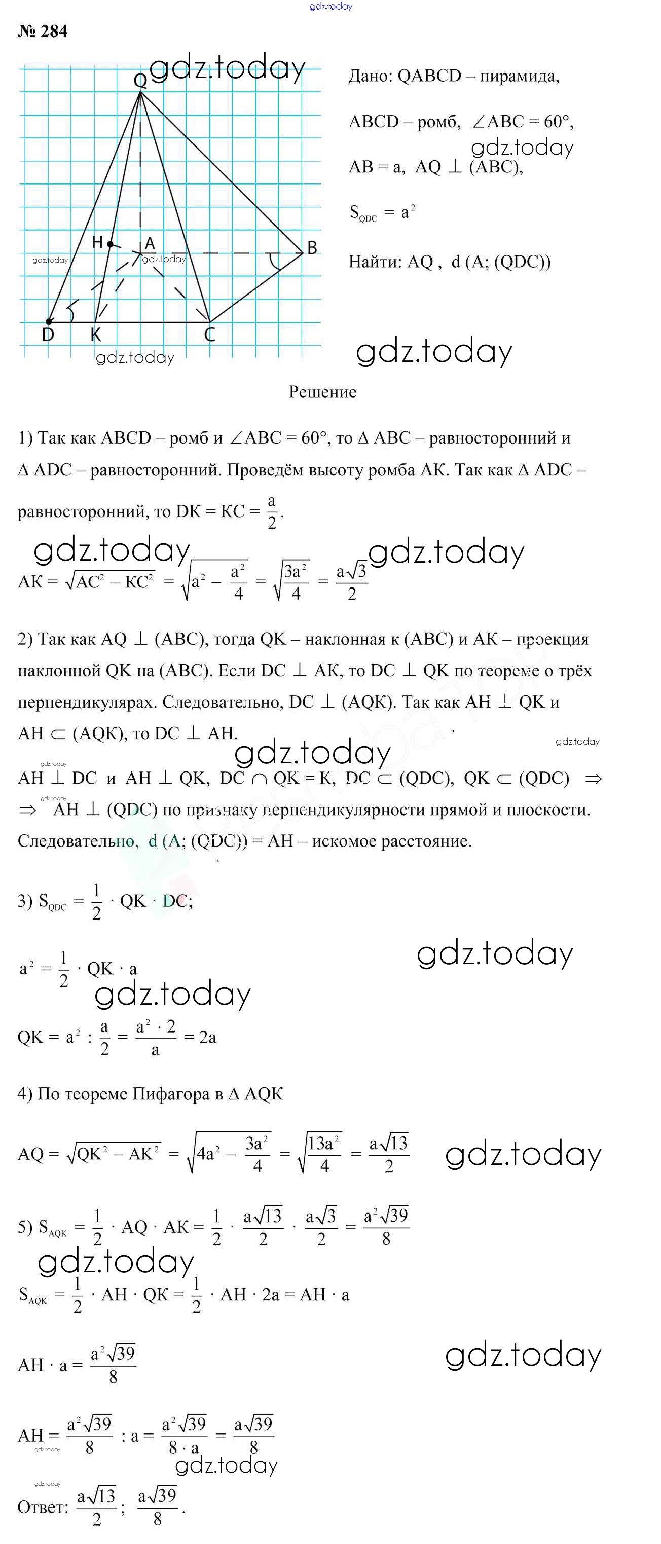 На страницах сайта gdz.today вы найдете учебный и вспомогательный материал, направленный на улучшения знаний школьной программы. ГДЗ - онлайн мир знаний Решение к задачам 284 Учебнику по Геометрии для 10 класса Латотин, Чеботаревский Народная асвета 2020