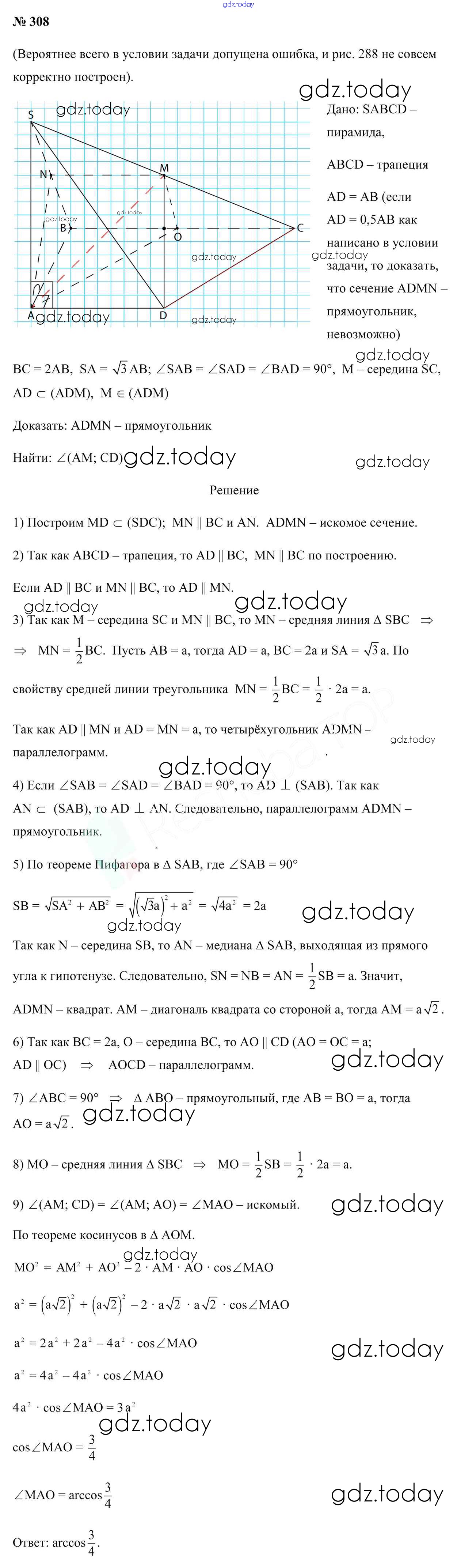 Ответы к Решение к задачам 308 Учебнику по Геометрии для 10 класса Латотин, Чеботаревский Народная асвета 2020