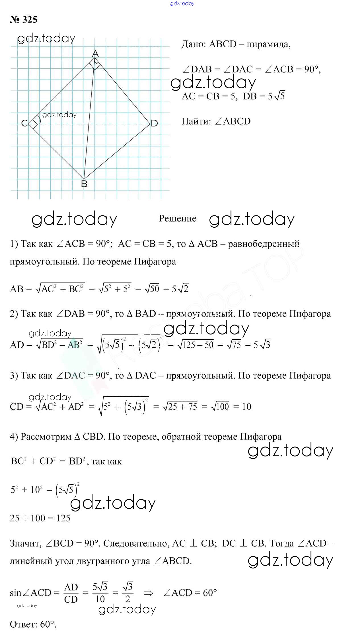 На страницах сайта gdz.today вы найдете учебный и вспомогательный материал, направленный на улучшения знаний школьной программы. ГДЗ - онлайн мир знаний Решение к задачам 325 Учебнику по Геометрии для 10 класса Латотин, Чеботаревский Народная асвета 2020