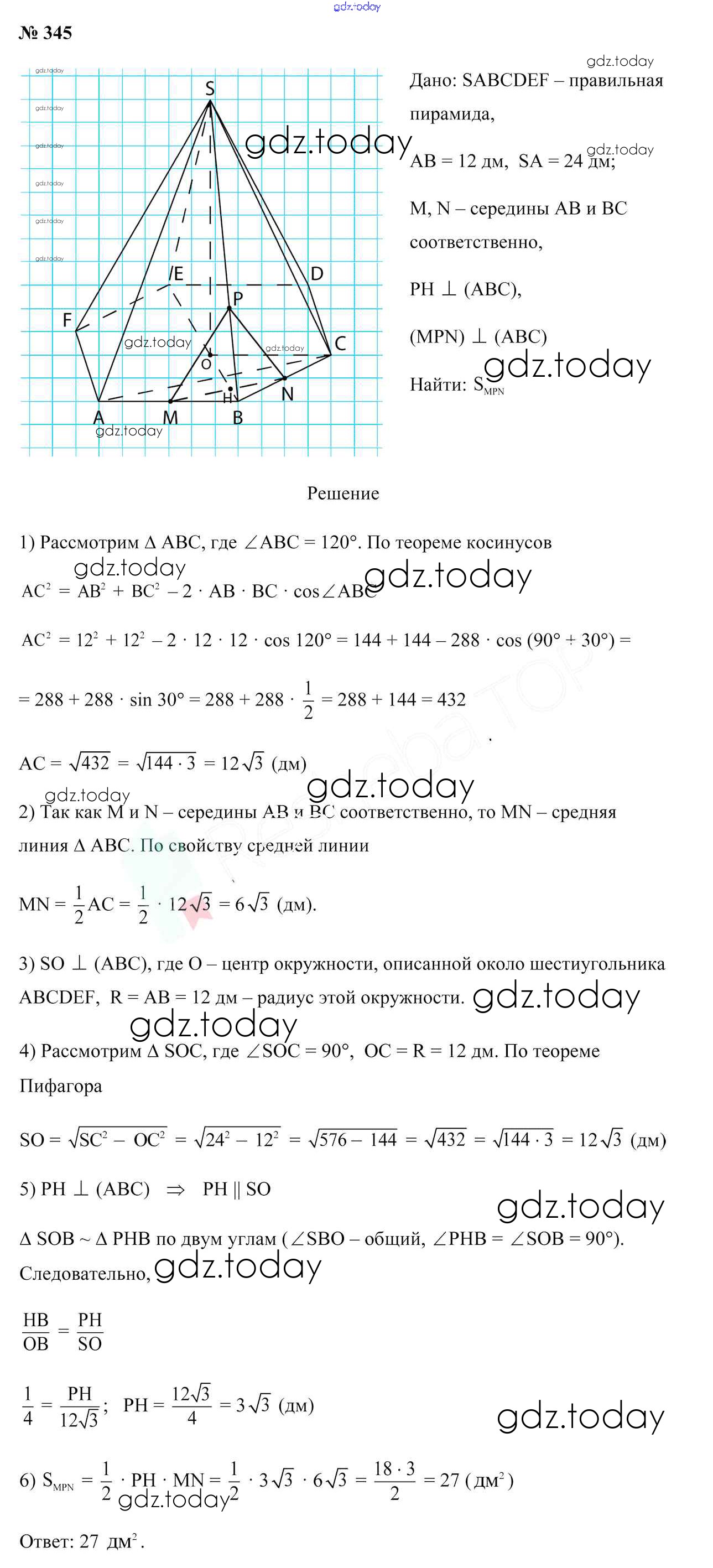 Ответы к Решение к задачам 345 Учебнику по Геометрии для 10 класса Латотин, Чеботаревский Народная асвета 2020
