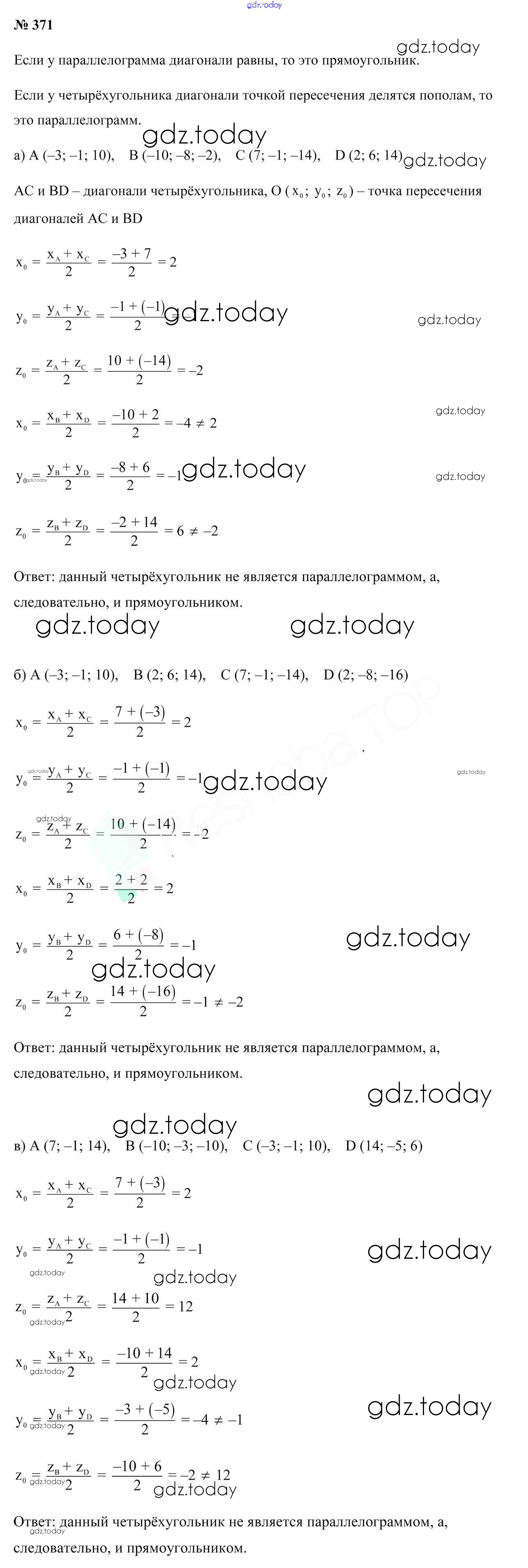 Ответы к Решение к задачам 371 Учебнику по Геометрии для 10 класса Латотин, Чеботаревский Народная асвета 2020