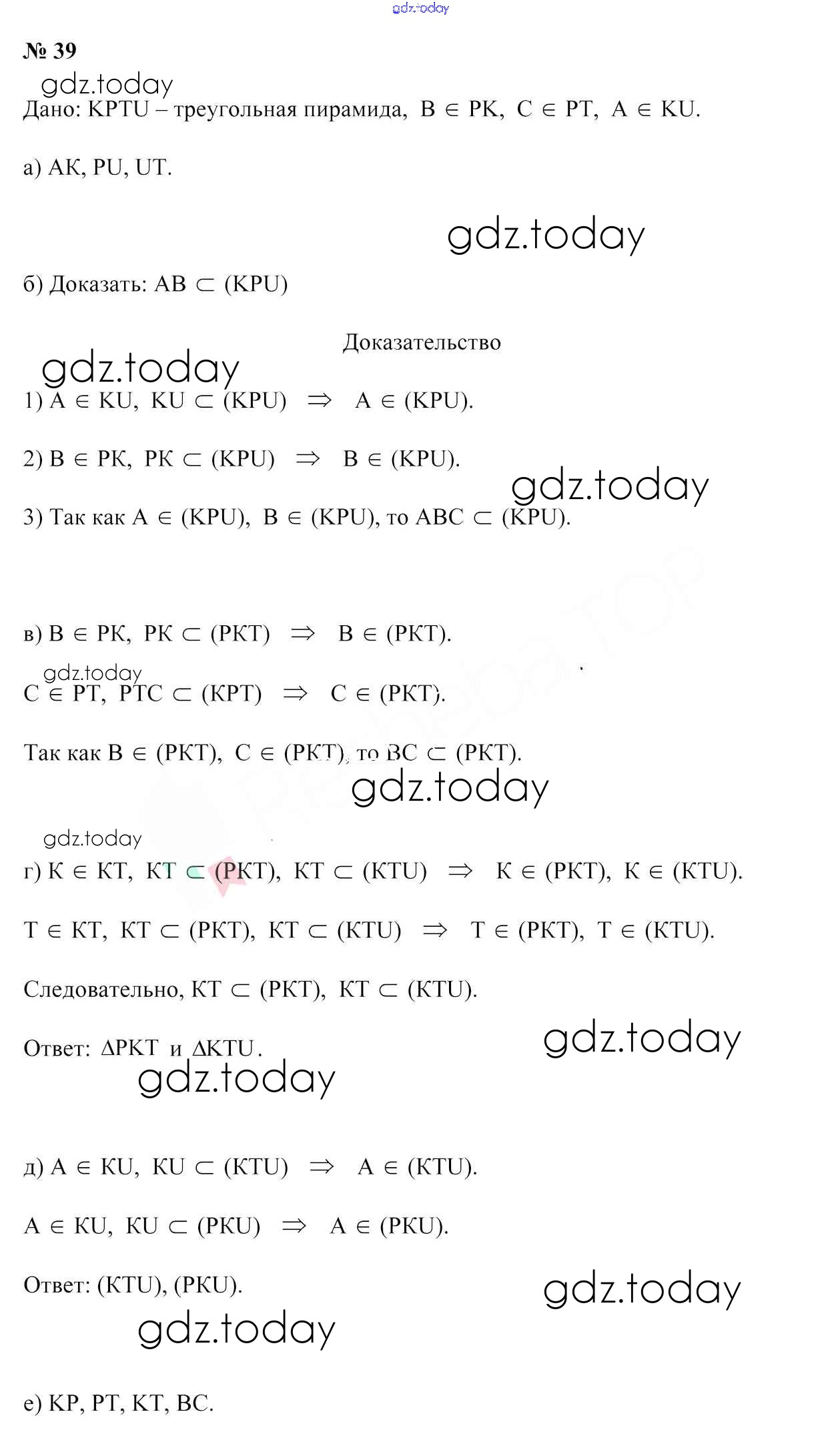 На страницах сайта gdz.today вы найдете учебный и вспомогательный материал, направленный на улучшения знаний школьной программы. ГДЗ - онлайн мир знаний Решение к задачам 39 Учебнику по Геометрии для 10 класса Латотин, Чеботаревский Народная асвета 2020