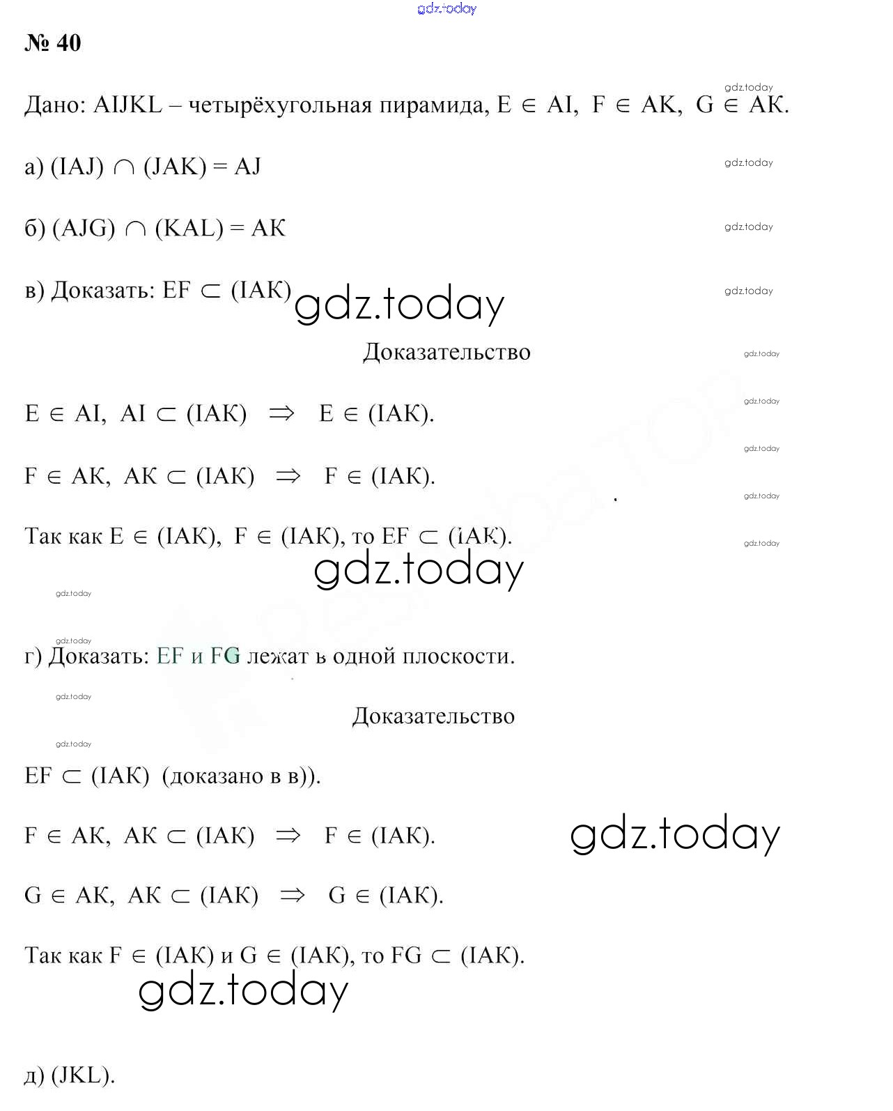 На страницах сайта gdz.today вы найдете учебный и вспомогательный материал, направленный на улучшения знаний школьной программы. ГДЗ - онлайн мир знаний Решение к задачам 40 Учебнику по Геометрии для 10 класса Латотин, Чеботаревский Народная асвета 2020