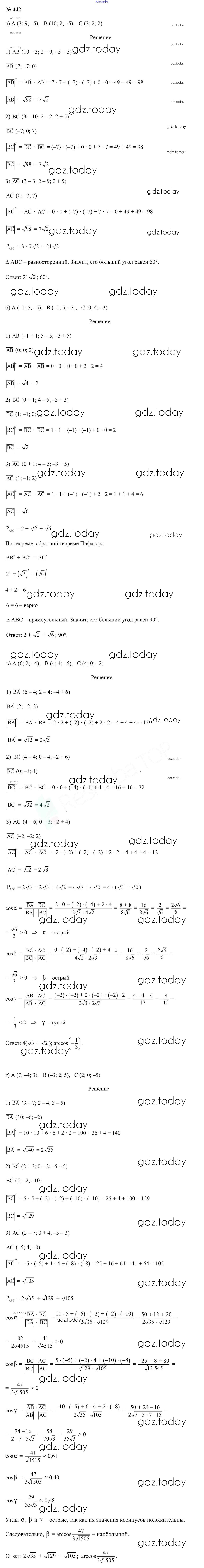 На страницах сайта gdz.today вы найдете учебный и вспомогательный материал, направленный на улучшения знаний школьной программы. ГДЗ - онлайн мир знаний Решение к задачам 442 Учебнику по Геометрии для 10 класса Латотин, Чеботаревский Народная асвета 2020