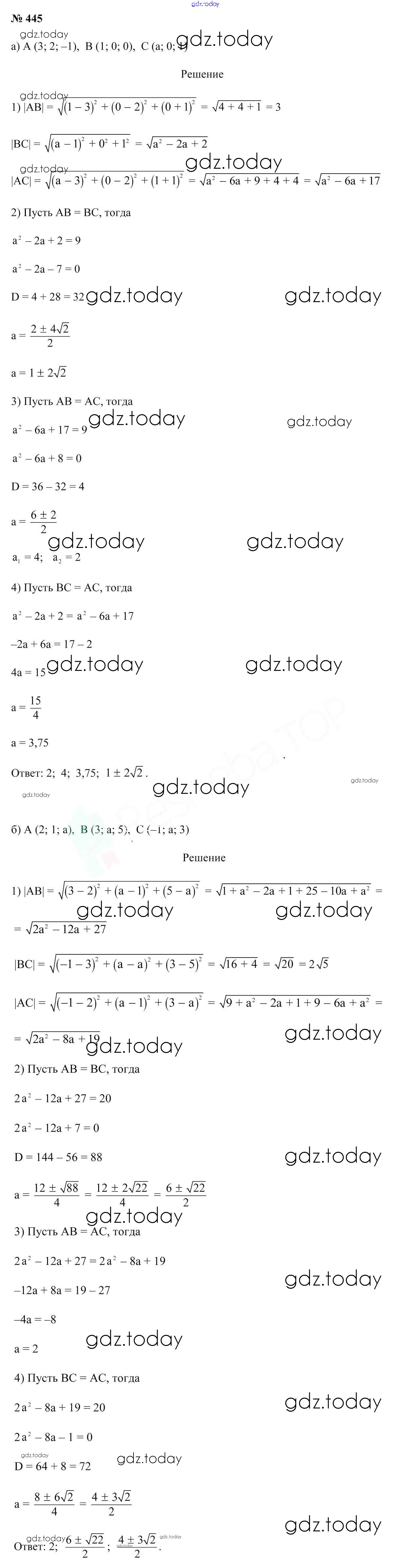 Ответы к Решение к задачам 445 Учебнику по Геометрии для 10 класса Латотин, Чеботаревский Народная асвета 2020