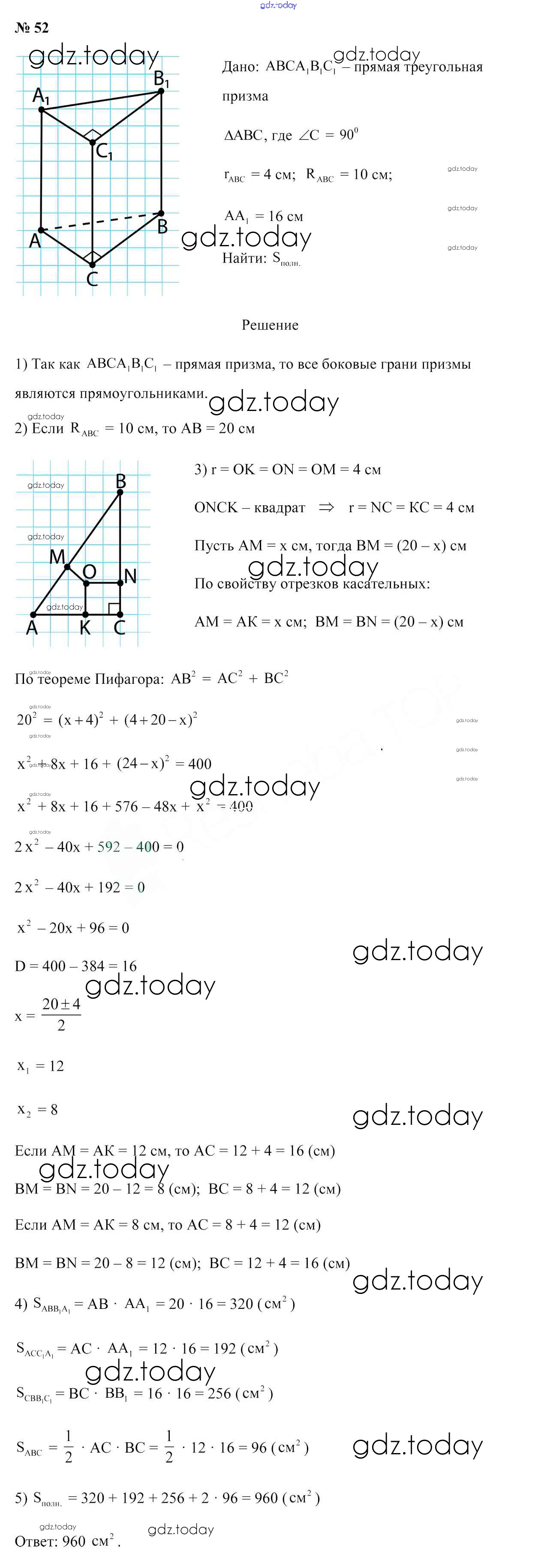 На страницах сайта gdz.today вы найдете учебный и вспомогательный материал, направленный на улучшения знаний школьной программы. ГДЗ - онлайн мир знаний Решение к задачам 52 Учебнику по Геометрии для 10 класса Латотин, Чеботаревский Народная асвета 2020