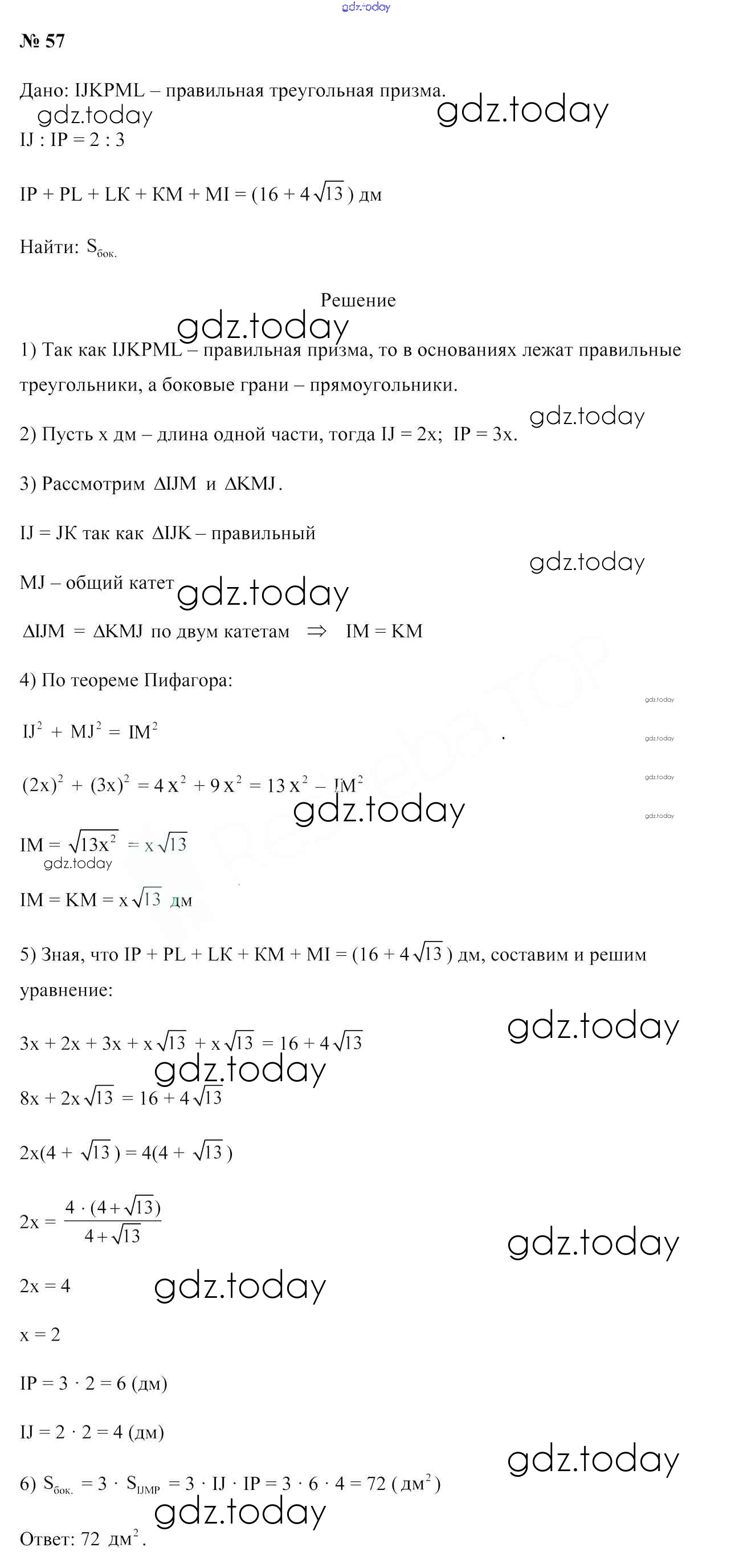 Ответы к Решение к задачам 57 Учебнику по Геометрии для 10 класса Латотин, Чеботаревский Народная асвета 2020