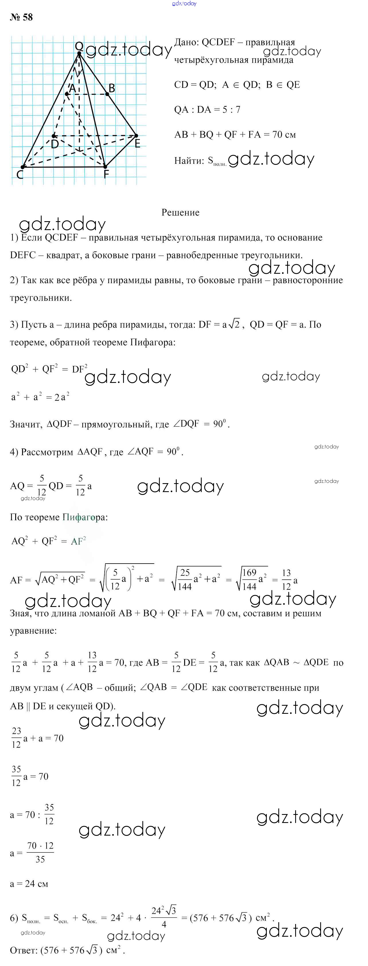 Ответы к Решение к задачам 58 Учебнику по Геометрии для 10 класса Латотин, Чеботаревский Народная асвета 2020