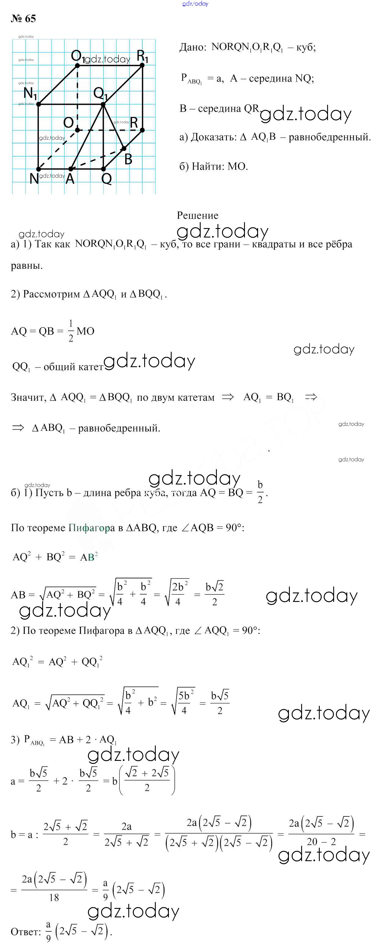 Ответы к Решение к задачам 65 Учебнику по Геометрии для 10 класса Латотин, Чеботаревский Народная асвета 2020