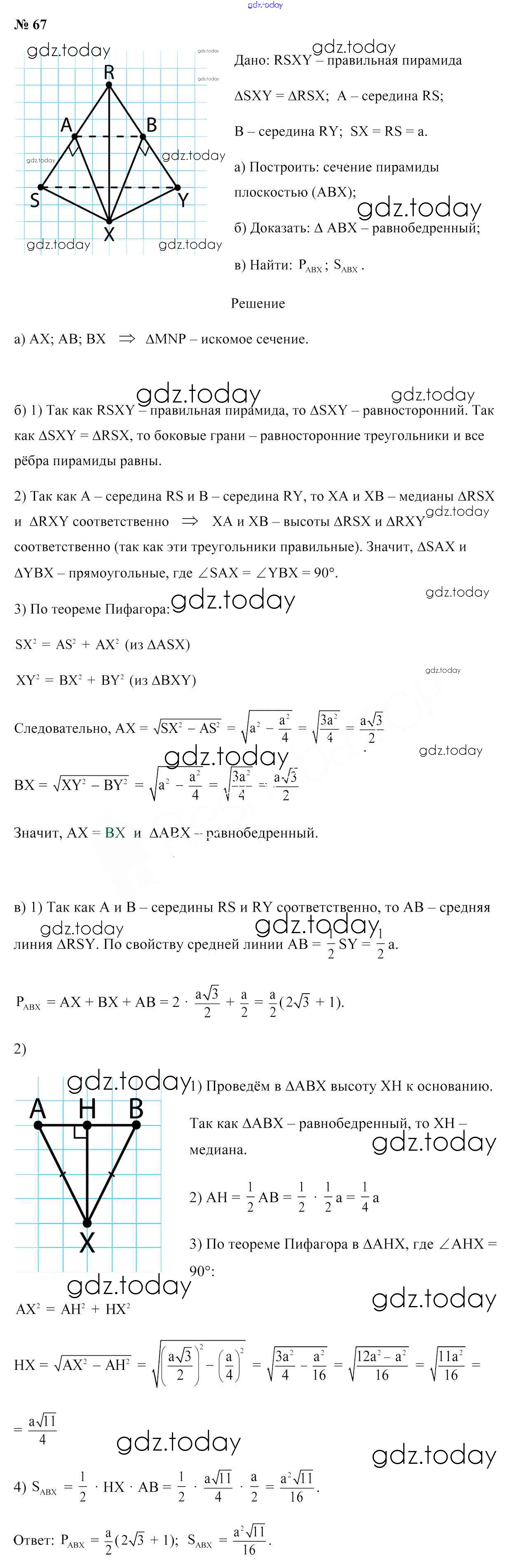Ответы к Решение к задачам 67 Учебнику по Геометрии для 10 класса Латотин, Чеботаревский Народная асвета 2020