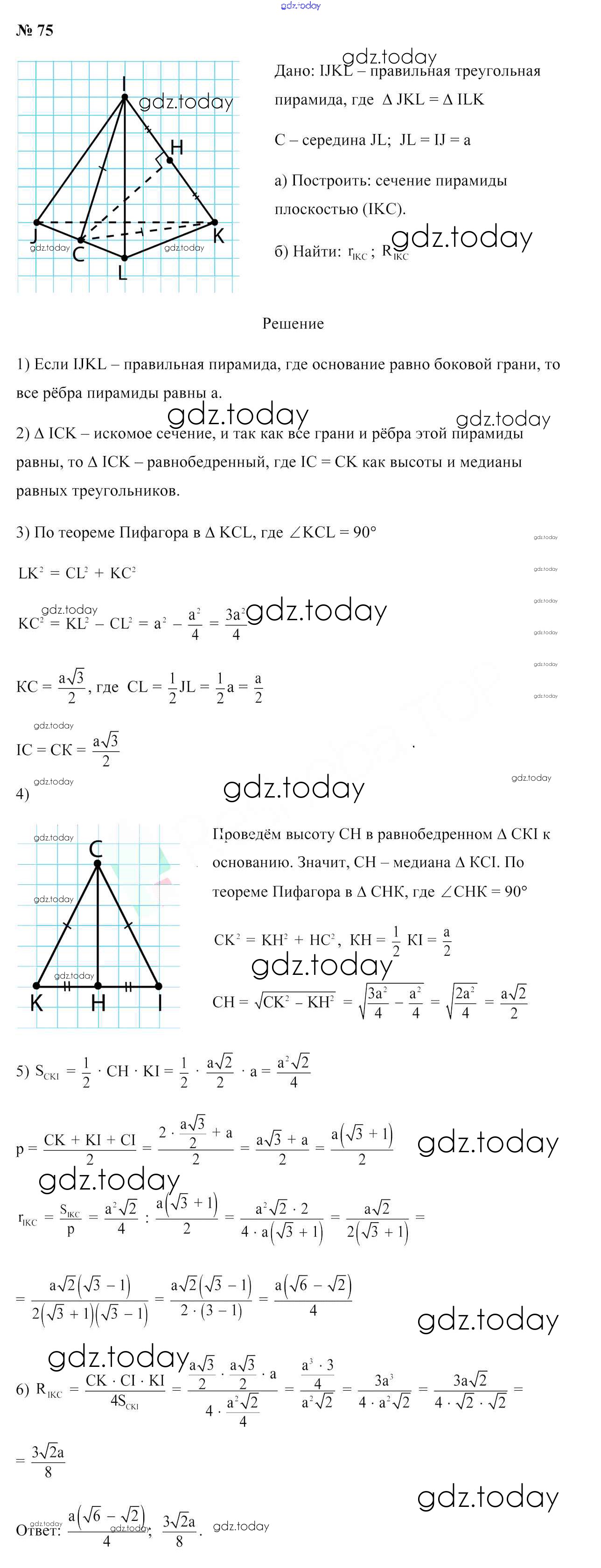Ответы к Решение к задачам 75 Учебнику по Геометрии для 10 класса Латотин, Чеботаревский Народная асвета 2020