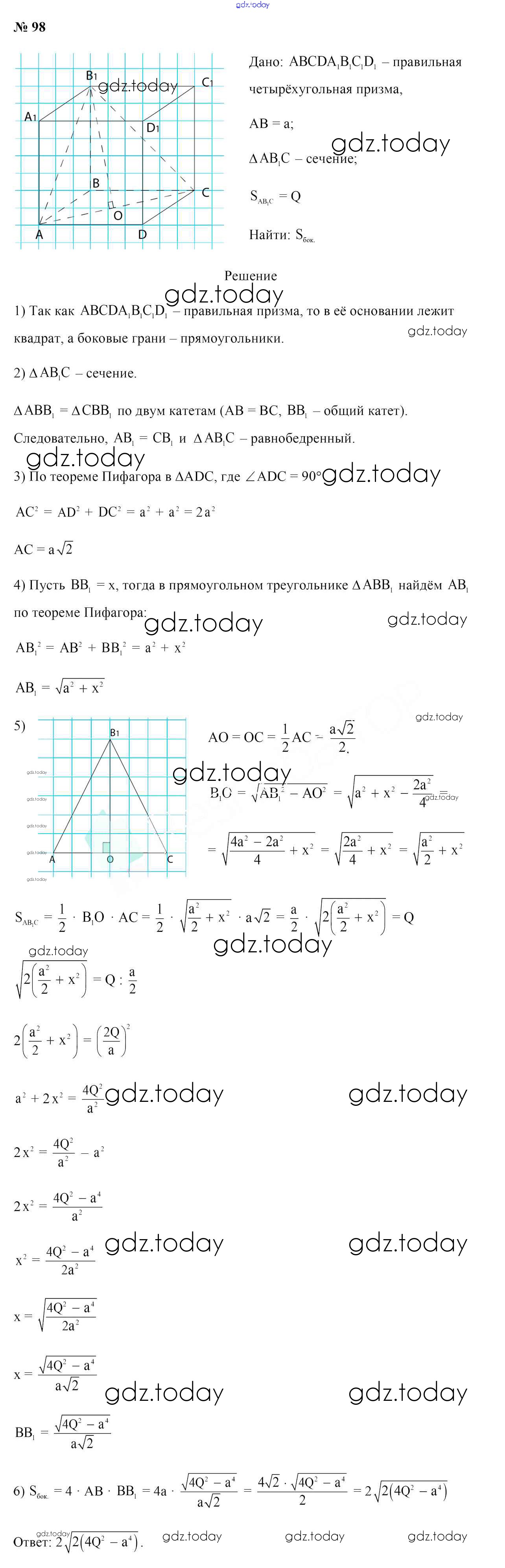 На страницах сайта gdz.today вы найдете учебный и вспомогательный материал, направленный на улучшения знаний школьной программы. ГДЗ - онлайн мир знаний Решение к задачам 98 Учебнику по Геометрии для 10 класса Латотин, Чеботаревский Народная асвета 2020