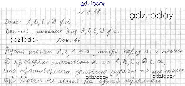 На страницах сайта gdz.today вы найдете учебный и вспомогательный материал, направленный на улучшения знаний школьной программы. ГДЗ - онлайн мир знаний Решение к §1 1.19 Учебнику по Геометрии для 10 класса Мерзляк, Номировский Базовый уровень Вентана-граф Алгоритм успеха 2017