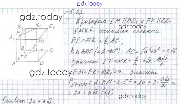 Ответы к Решение к §5 5.22 Учебнику по Геометрии для 10 класса Мерзляк, Номировский Базовый уровень Вентана-граф Алгоритм успеха 2017