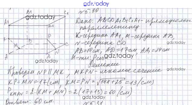 Ответы к Решение к §5 5.30 Учебнику по Геометрии для 10 класса Мерзляк, Номировский Базовый уровень Вентана-граф Алгоритм успеха 2017
