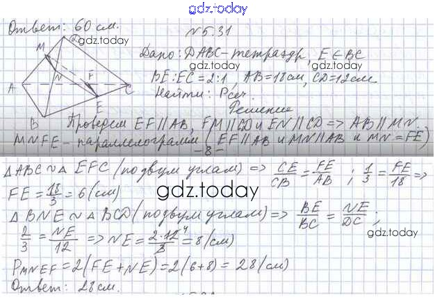 Ответы к Решение к §5 5.31 Учебнику по Геометрии для 10 класса Мерзляк, Номировский Базовый уровень Вентана-граф Алгоритм успеха 2017