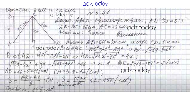 Ответы к Решение к §5 5.41 Учебнику по Геометрии для 10 класса Мерзляк, Номировский Базовый уровень Вентана-граф Алгоритм успеха 2017