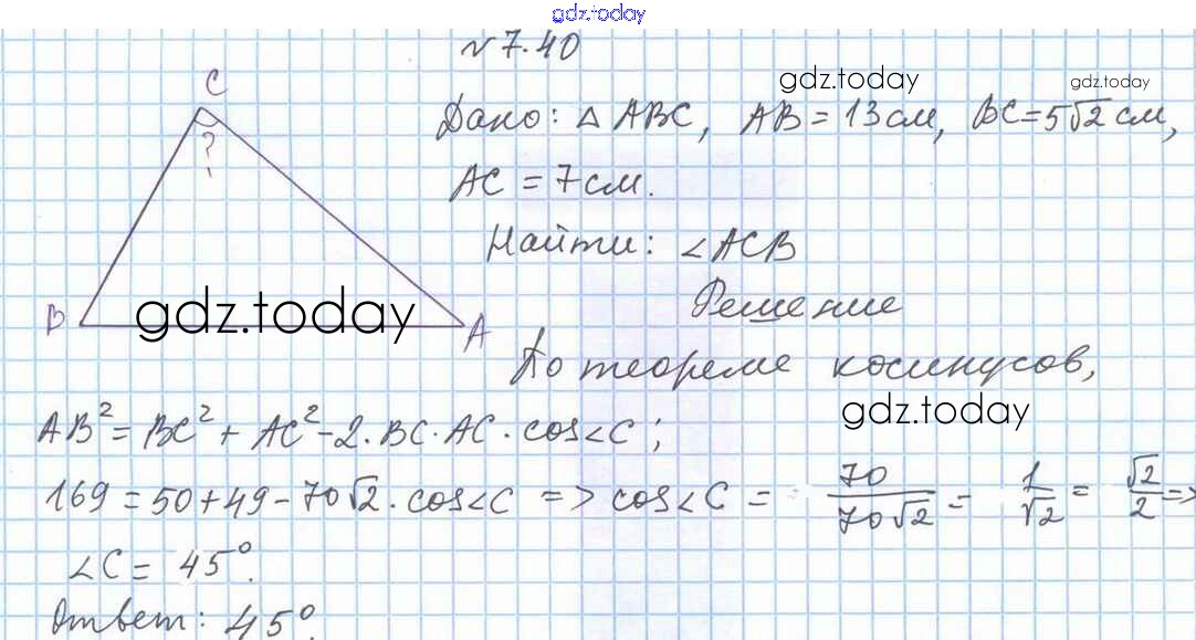 Ответы к Решение к §7 7.40 Учебнику по Геометрии для 10 класса Мерзляк, Номировский Базовый уровень Вентана-граф Алгоритм успеха 2017